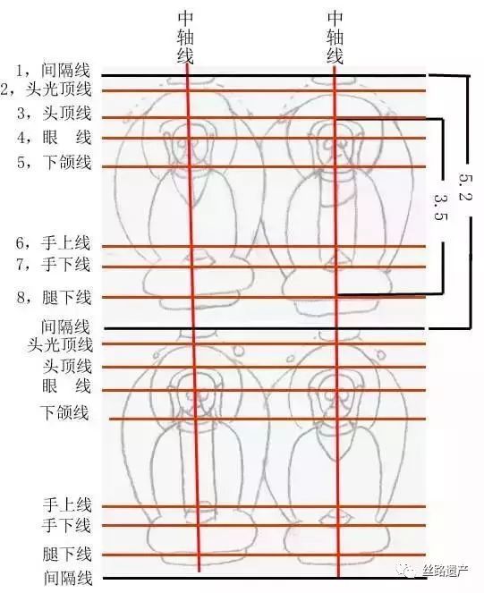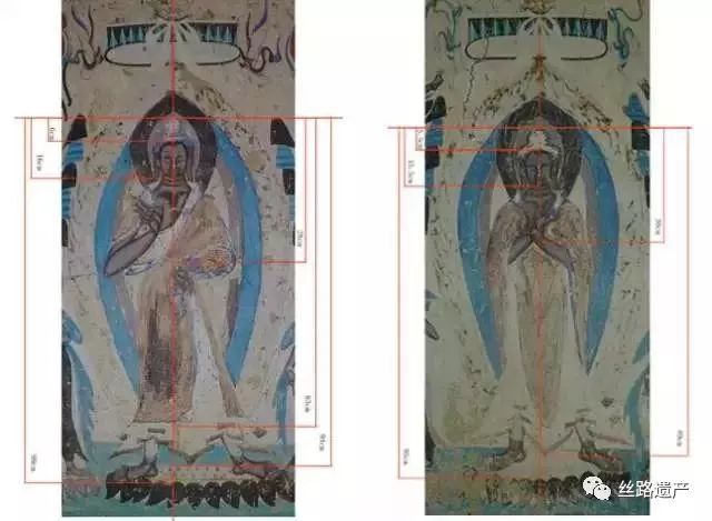 壁画的特性是依附于建筑而存在的,所以,建筑墙体作为承载和表现壁画的载体,其先期的制作就显得尤为重要。敦煌石窟及丝路沿线的石窟,在此方面也都有许多的相似性。 在敦煌文献中也有诸多的关于制作壁画墙底的记载,其工艺制作大多很讲究,民间艺人(包括一些学养很高的画家)在长期的壁画实践中总结出了非常耐久的壁画制作工艺。依据传统工艺进行制作,从墙面处理、绘制程序到颜料的研制都考虑到壁画的附着力和颜料的耐久性,这也为佛教的宣传提供了长久的视觉图式支持。 敦煌石窟壁画泥地仗的制作工序 敦煌文献史料显示:敦煌9-11 世纪初瓜沙归义军时期,敦煌古代工匠大体分为官府、寺院和个体三大类[1]。可以想见,在早期大规模石窟群及壁画形成的整体风格来看,当时就有师徒相传、子承父业以此为生的集团或家族式的寺窟营建队伍。敦煌石窟6-10 世纪壁画中有工匠活动的图像资料,最早在北周第296 窟窟顶,有一幅《建塔和画壁图》,在上下两层的画面中,可看到工匠们正在建塔及画壁的情景,分工明确,有在塔上砌墙的,有在下面运送及传递材料的,还有手拿矩尺专门指挥全局的;在下层画面中,有修补屋檐及运送材料的匠人,在房屋的两边,分别有一手拿调色碗、一手举笔画壁的画匠,这幅生动的图面展现了古代敦煌的泥匠、木匠及画匠们从事劳作的形象和场景。从这些资料中,们可知敦煌石窟壁画的墙壁制作是分工细致而又很专业的工匠群体。 1.壁画的地仗层及制作材料 地仗是石窟壁画的载体,可以说是壁画的“基础层”,壁画的“基础层”是绘制壁画的第一个步骤。如果忽视了这个层次的制作工艺,基础层衬托使颜料层的颜色更加鲜艳及粘接更为牢固的作用都会受到影响。 地仗层所用的材料是: 岩壁层:酒泉系砾岩,主要为沙土与小石头凝结而成; 粗粉土:取自洞窟附近的粉质沙土; 细粉土:取自莫高窟前宕泉河床上或附近山洪时在低洼处沉 淀的粒度很细的粉土(敦煌俗称澄板土),一般都在0.001mm-0.5mm之间; 麦秸草:为敦煌当地的农作物麦子的茎秆部; 麻筋:为敦煌当地的农作物油麻茎秆外皮的韧性纤维。 2.壁画泥地仗的制作工序 一般是先整平已开凿好的洞窟岩面,再在岩面上制作壁画,即壁画的泥地仗。敦煌北凉北魏洞窟的壁画壁面均为两层,即粗草泥层和细草泥层。 第一步:先上一层粗草泥。用粗粉质沙土掺加短麦秸草浸泡调和制成泥,压抹在洞窟的砾石岩面上。粗草泥层的厚度一般都在50px-125px,这主要视洞窟的大小和岩面的砾石粒度及平整状况而定,以基本压平为准,这是做出平面的第一步。 第二步:接着再抹第二层细草泥。用细质粉土掺加短麻筋调制成泥,压抹在粗草泥层之上,一般厚度为7.5px-12.5px。 至此,制作墙壁的工序完成,可以在上面作画了。北凉北魏时期的洞窟是直接在泥地上作画的,没有后期地仗制作中的白粉层。 敦煌石窟的营建,在材料的选择上,从墙体支撑材料到绘制颜料往往是就地取材,这样的好处很多,节约费用,取用方便,但最重要的是采自当地的材料在物质属性上能适应石窟的自然环境,使画作能长期留存,与周围的关系也能很好地协调。用今天的眼光看来是环保的、生态的材料。敦煌的自然环境非常干旱,在泥中加入麦草秸或麻筋,可以增强泥的韧性和稳定性,防止表层干裂。现在敦煌当地农民,在修建房屋抹墙泥时,仍然有在泥中加入上述材料的习惯。早期的这种做墙壁的方法,一直影响到以后各时期洞窟的制作。 洞窟内容壁面分布示意图 敦煌石窟壁画的绘制顺序及方法 1.洞窟墙壁划分的方法 在做好泥地仗之后,绘制洞窟壁画的第一道工序,是根据洞窟的大小、窟型及内容,对所绘墙面进行大的划分。敦煌早期洞窟的壁画都是有一定规划的,顶部一般画装饰图案:藻井、平棋、椽间自由图案等;四壁腰部画佛像和主题性故事画;其下画小身供养人行列;四壁上端绕窟一周,画天宫伎乐;四壁下方画金刚力士;其余壁面密布千佛。 在北魏第251 窟、254 窟、248 窟,西魏249 窟壁画中,有的地方被色彩覆盖,而在有些露出墙底的泥地仗上,都可看到许多清晰的土红色线。有竖的垂直线,主要是不同内容之间、大画面之间的分隔线;而出现在说法图正中间的红线,主要是为这幅单独的画面中起中轴线作用的。另外,在每个千佛像正中心的红线,也是起相同的作用。也有很多横的红色线,主要是作水平之用。如果仔细观察这些土红色线,会发现不是用手工画上去的,这些线的边缘不光滑,周围有很多的毛刺及喷溅的小色点,是色线绳经拉扯受力后撞击在墙面上出现的效果,这是典型的木匠们在木头上取直线时采用的方法,即用墨斗拉色线绳将线拉弹到木头上去时,线才会呈现这样的形态。 另外,壁画中对圆形、正方形的绘制也是有一个逐渐认识和熟练绘制的过程。第268、272、251、254、259、260、431、435 窟等窟顶,都有圆形的莲花图案,这些圆形有大有小,有藻井中心独幅的,也有平棋图案中并列连续的。如北凉第268 窟窟顶平棋图案中的圆形莲花,可看出已经是使用了“规”来画圆形,但也许是工匠的绘制水平或对处理圆形还没有足够的经验,对圆形、方形在绘制时对边缘不够重视,用笔也较随意,故显得不规整而粗糙;至北魏251、254、259、260、431、435 等窟顶部的方形藻井和莲花圆形,已经绘制得非常准确而精美了。其中435窟窟顶平棋图案的圆